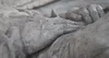 Encounter #3 - 2012, ceramic, 13" x 62" x 28" - Detail showing deterioration due to living on the street, as installed on Hollywood Blvd.